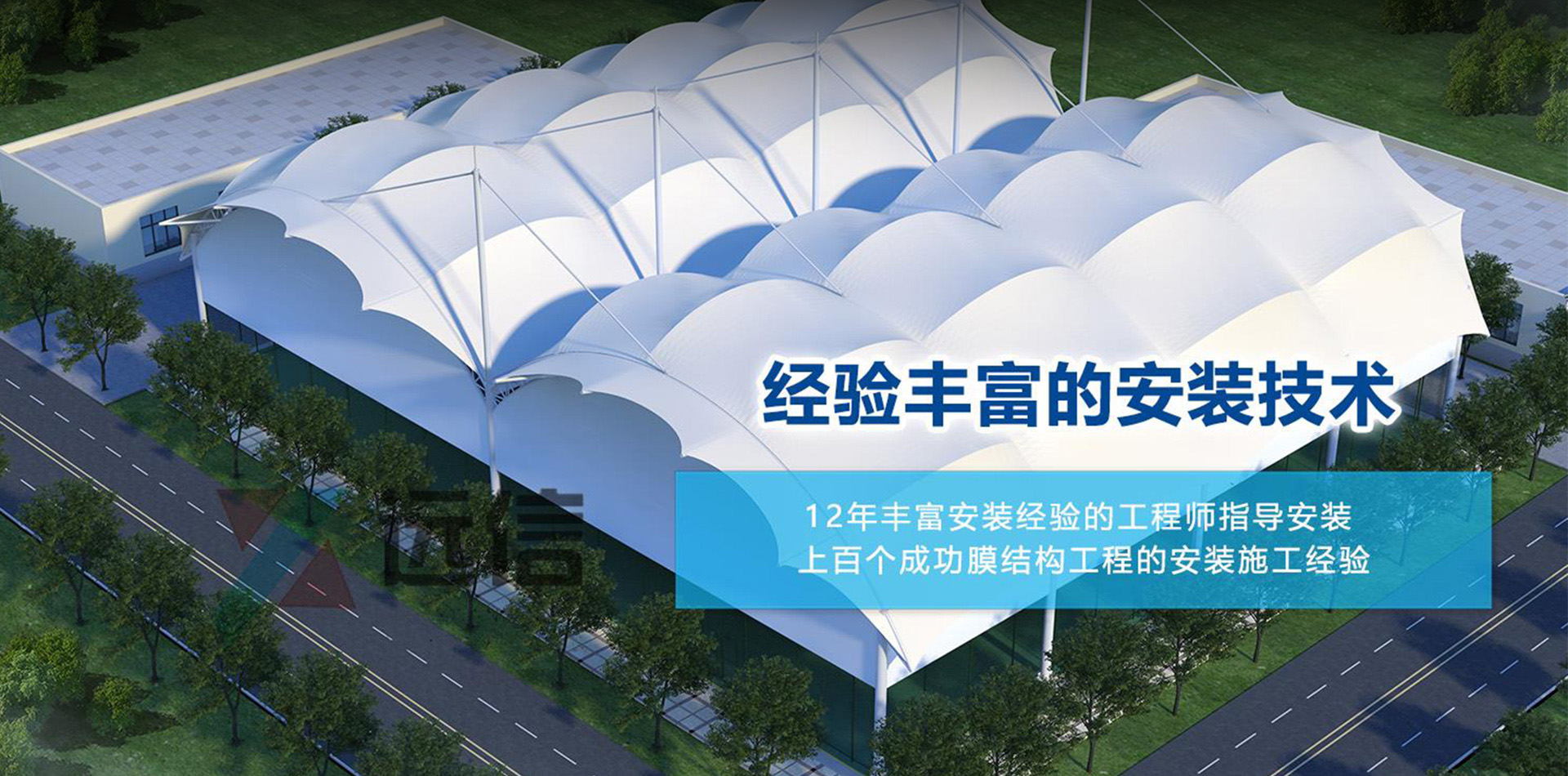 3.從結(jié)構(gòu)設(shè)計(jì)上降低膜材安裝難度選用膜材均為國產(chǎn)或進(jìn)口優(yōu)質(zhì)膜材料,高強(qiáng)拉力,優(yōu)質(zhì)抵抗老化涂層